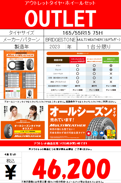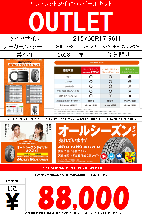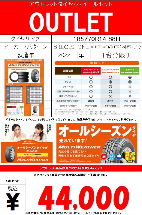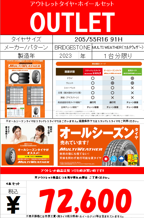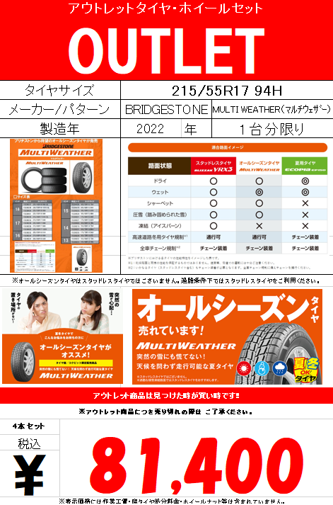 ブリヂストンのオールシーズンタイヤ【MULTI WEATHER(マルチウェザー)】 | 店舗おススメ情報 | タイヤ館 高槻 (taiyakan.co.jp)