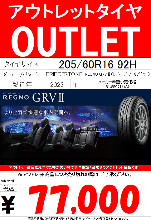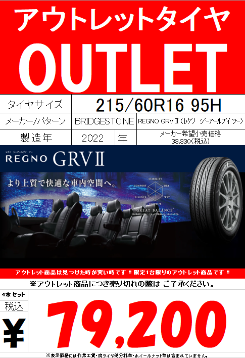 【OUTLET情報】REGNO GRVⅡ(レグノ ジーアールブイ ツー)