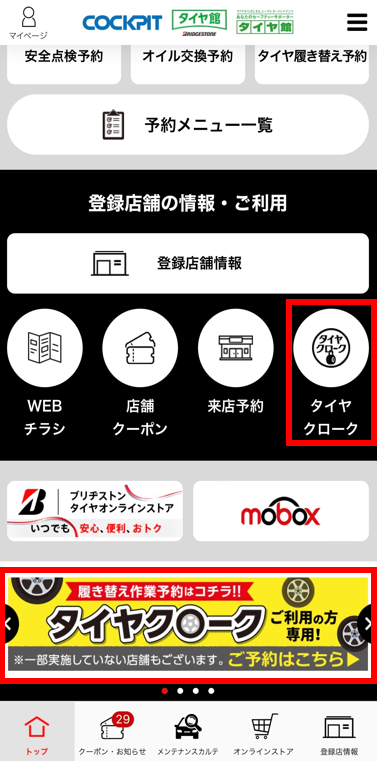 ※「クローク契約会員専用タイヤ履き替え.....」と