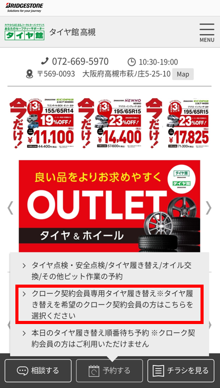 タイヤ館高槻店ホームページ
