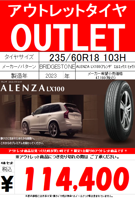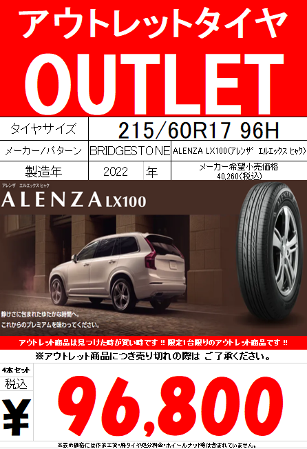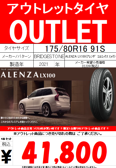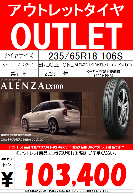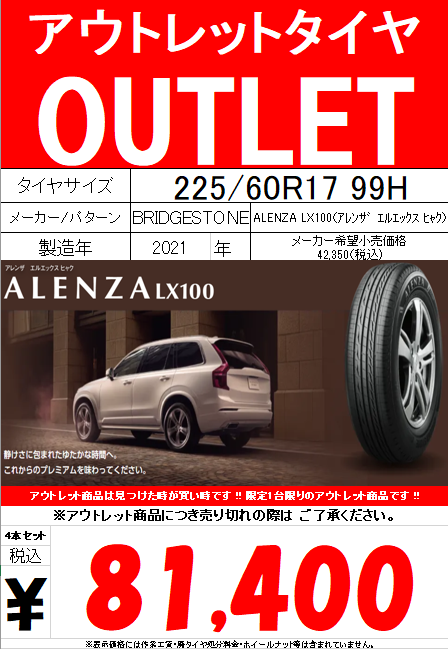 ✓ アウトレットタイヤは見つけた時が買い時です。