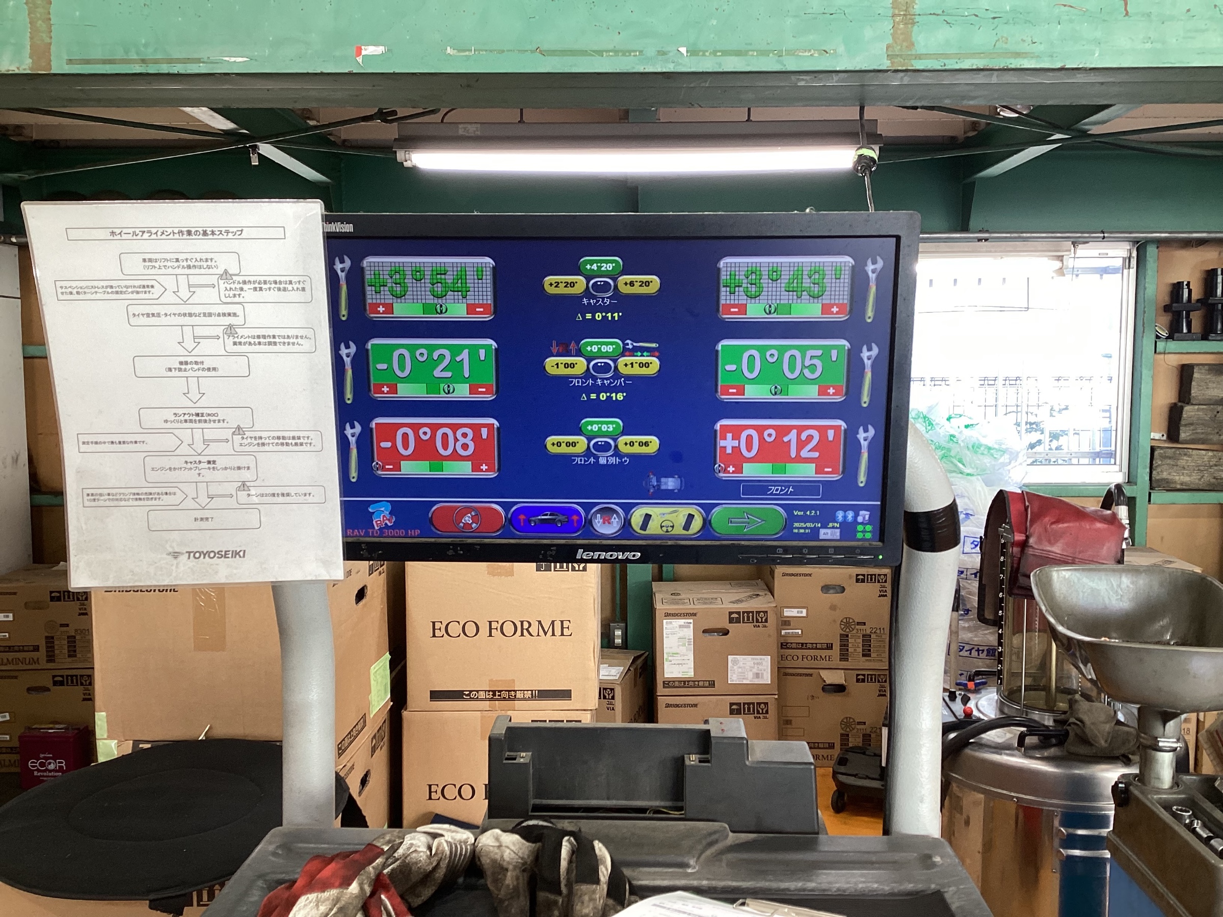 メーカーの基準値に合わせるように調整を実施します