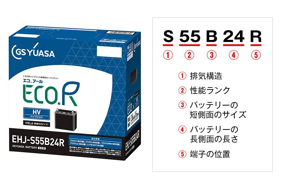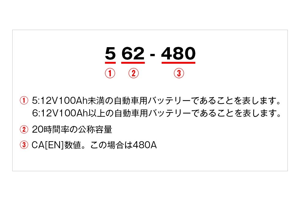 EN規格(欧州統一規格)の日本車専用のもので、電池工業会規格(SBA)が規格化。
