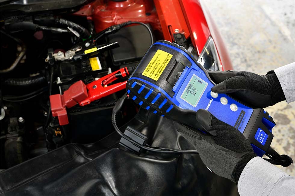 バッテリーは交換後から性能低下がはじまり、寿命末期に突然性能がダウンします。そのためクルマを使用するなかで性能低下の兆候を捉えるのは難しく、交換のタイミングを判断するのは容易ではありません。また、安定した電力を供給するためには、バッテリーの状態のほかにオルタネータ(発電機)のコンディションも重要です。そこでコクピット・タイヤ館では、最新の専用機材(バッテリーチェッカー)を使用して的確な点検を行います。