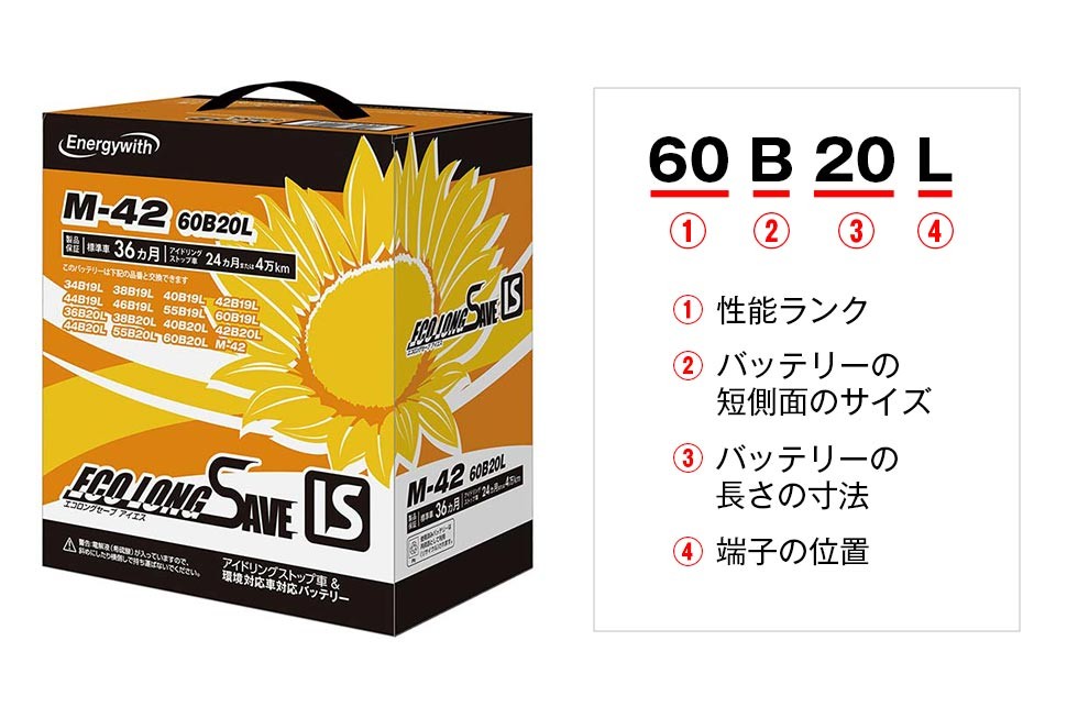 例えば、充電制御システム対応バッテリーで、40B19Lという形式が標準品だとすると、60B19Lはより容量の大きい(形式の最初の2桁の数字が大きいほど大容量)バッテリーとなります。また、アイドリングストップシステム対応バッテリーで、M-42Lという形式が標準品の場合、M-65Lという容量の大きい(形式の最後の2桁の数字が大きいほど大容量)バッテリーを選ぶこともできます。