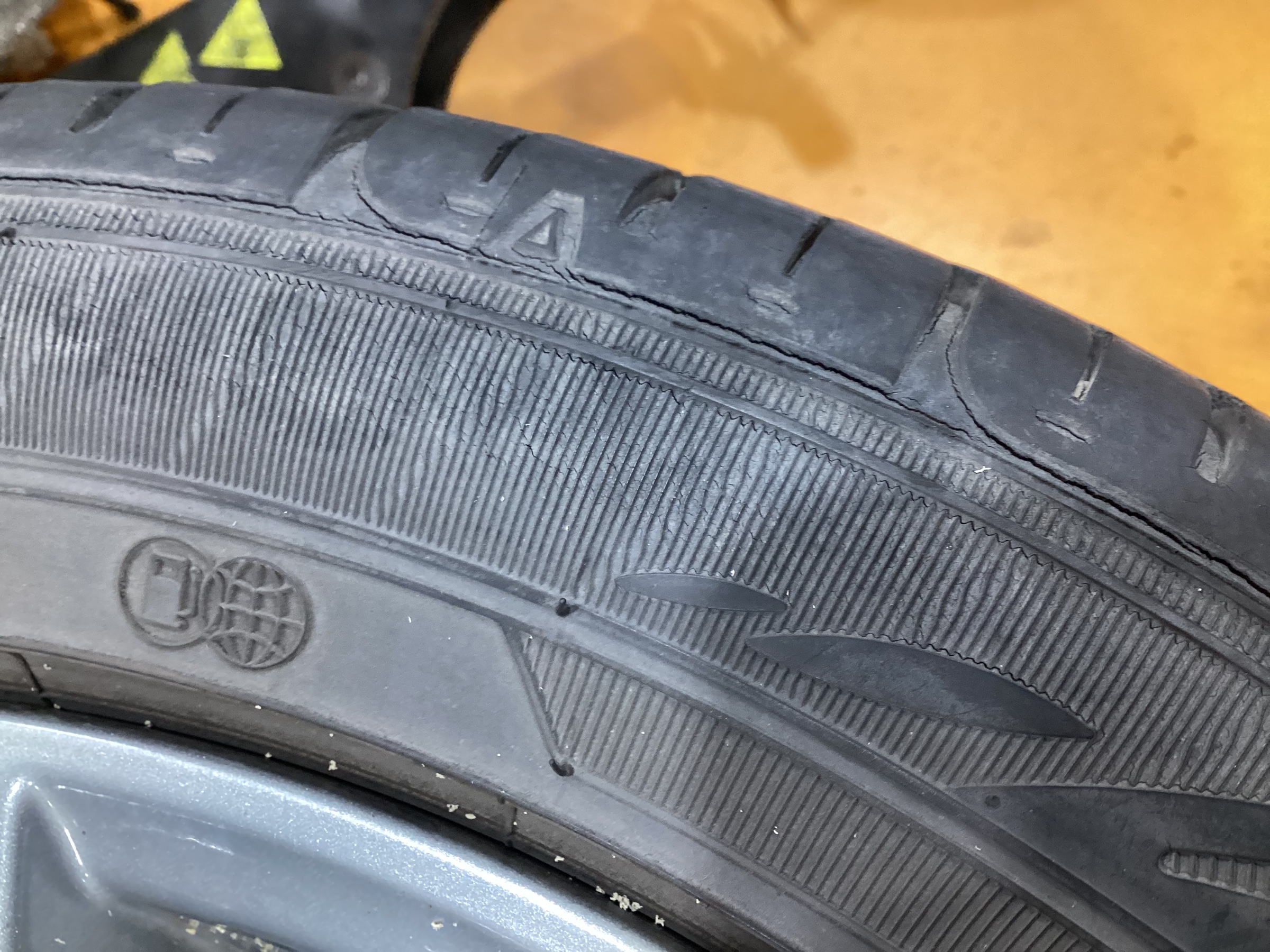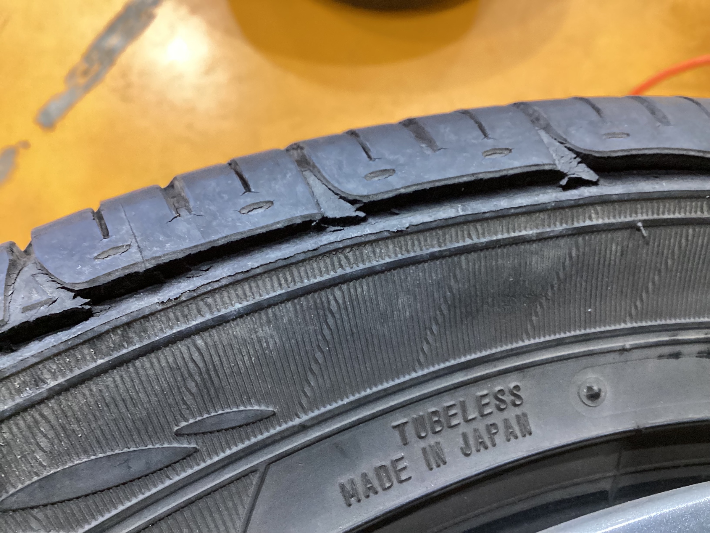 長年ご使用になられたタイヤの側面にヒビが入っているので点検に来て頂きました