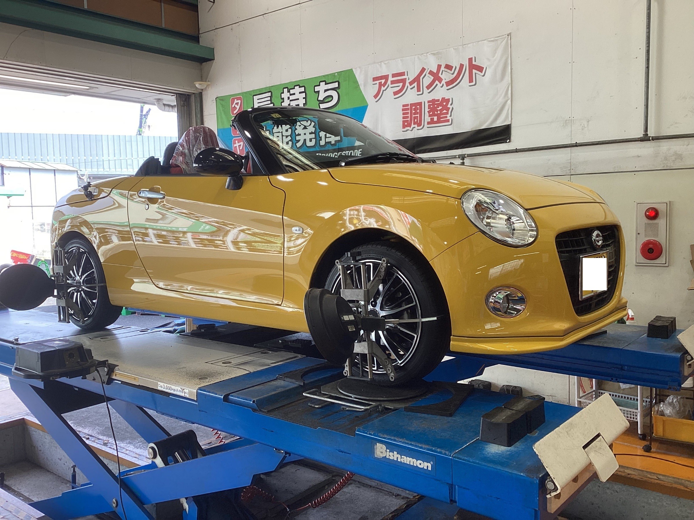 本日はダイハツ・コペンのタイヤ交換とアライメント調整を実施致しました