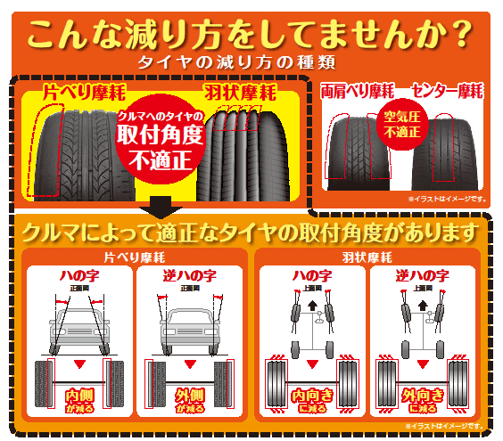 永年使ってきたタイヤにこそ『アライメント調整の狂い』の痕跡が残されているものです!