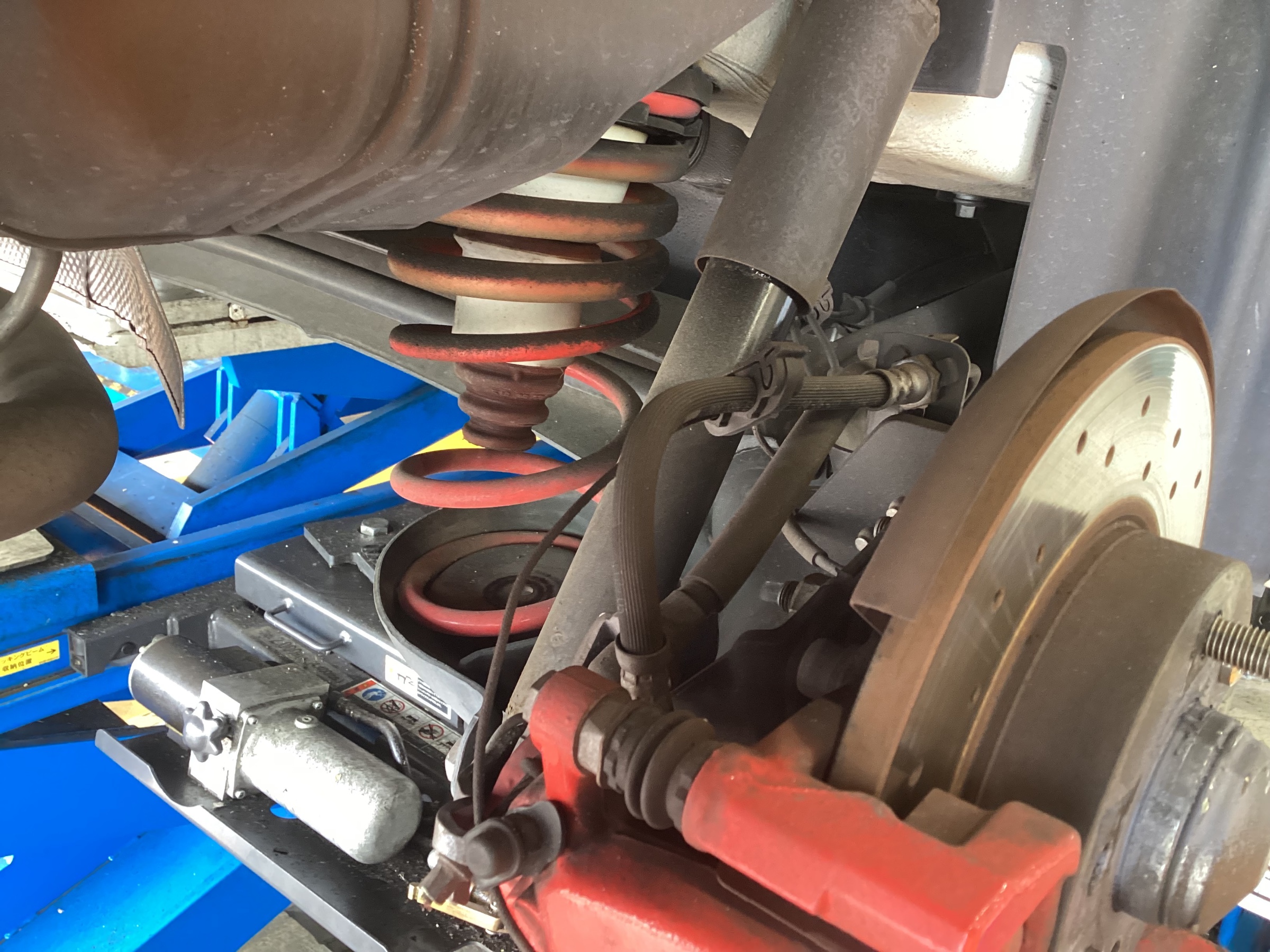 オーナー様のご要望としてはリアの車高をフロント程度に落としたいとの事です