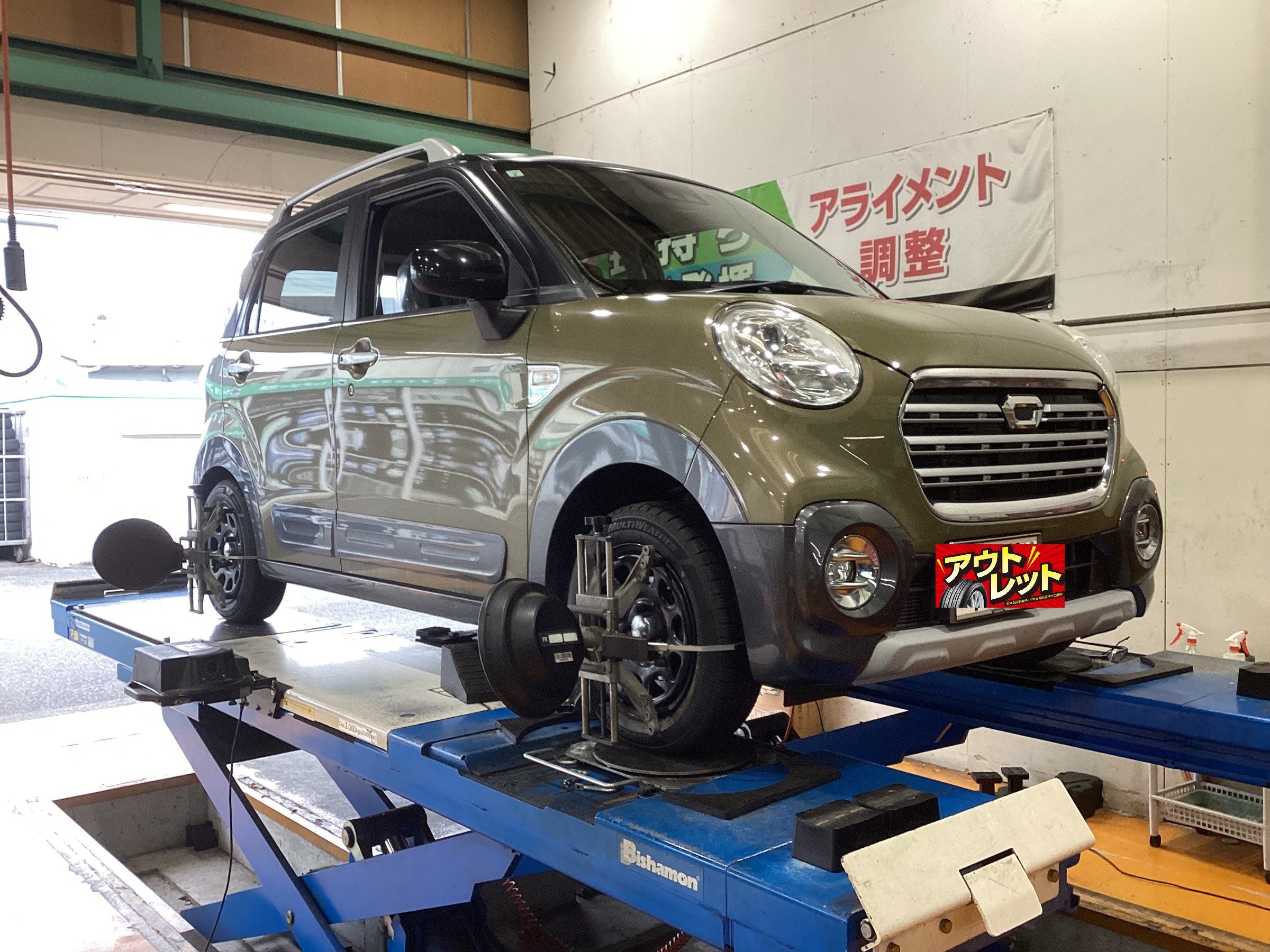 本日はダイハツ・キャストにアウトレットタイヤでお得なタイヤ交換を実施しました