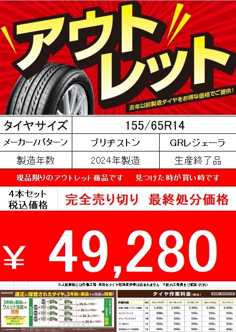 軽自動車に高評価なタイヤ レグノGR-レジェーラ☆アウトレットタイヤあります