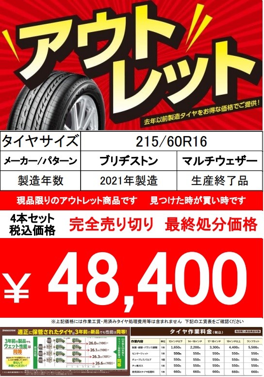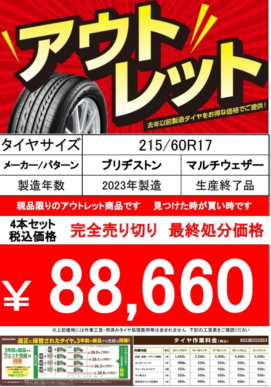 人気のオールシーズンタイヤのアウトレットタイヤをご紹介いたします ポスト 2025年6月16日 使って便利なオールシーズンタイヤ ブリヂストンのマルチウェザー アウトレットタイヤのご紹介 タイヤ館 高槻 住所:569-0093大阪府高槻市萩ノ庄5-25-10 電話番号: 072-669-5970 相談予約 カテゴリ:タイヤ関連