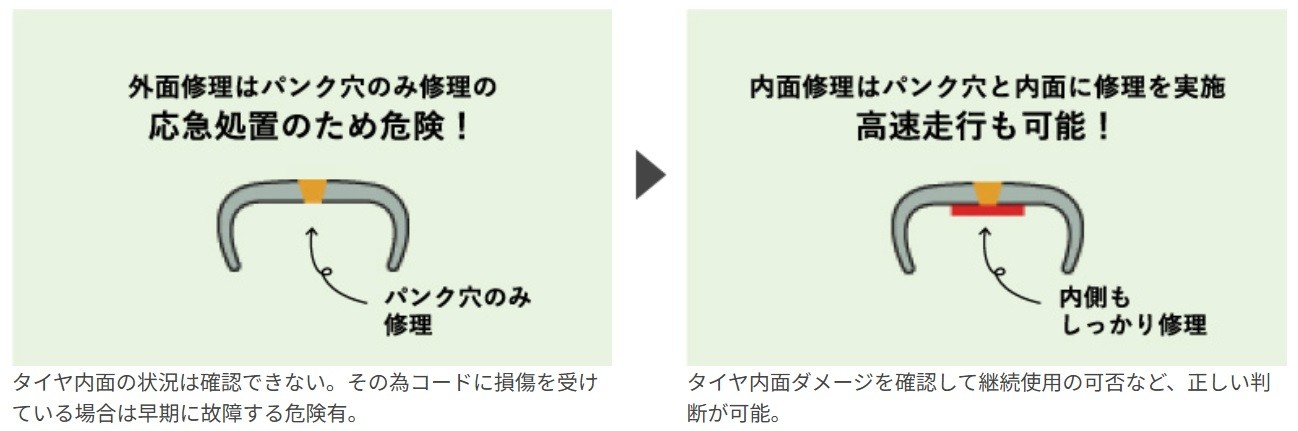 2つのパンク修理「外面修理」と「内面修理」