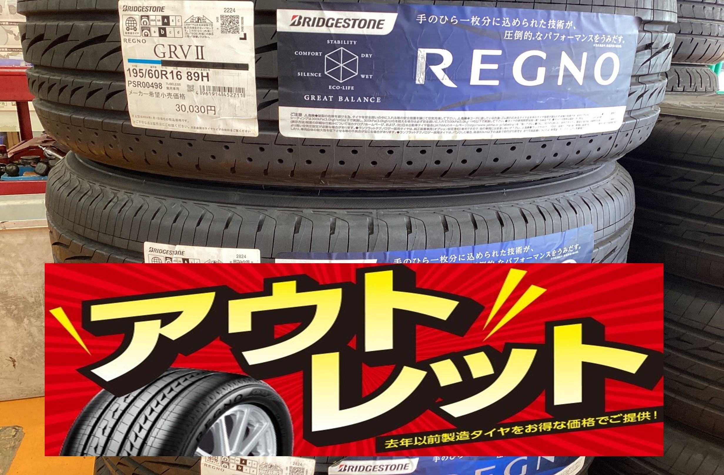 本日は先日ご注文頂きましたアウトレットタイヤ レグノGRVⅡ 195/60R16 89Hが入荷しましたのでご紹介いたします