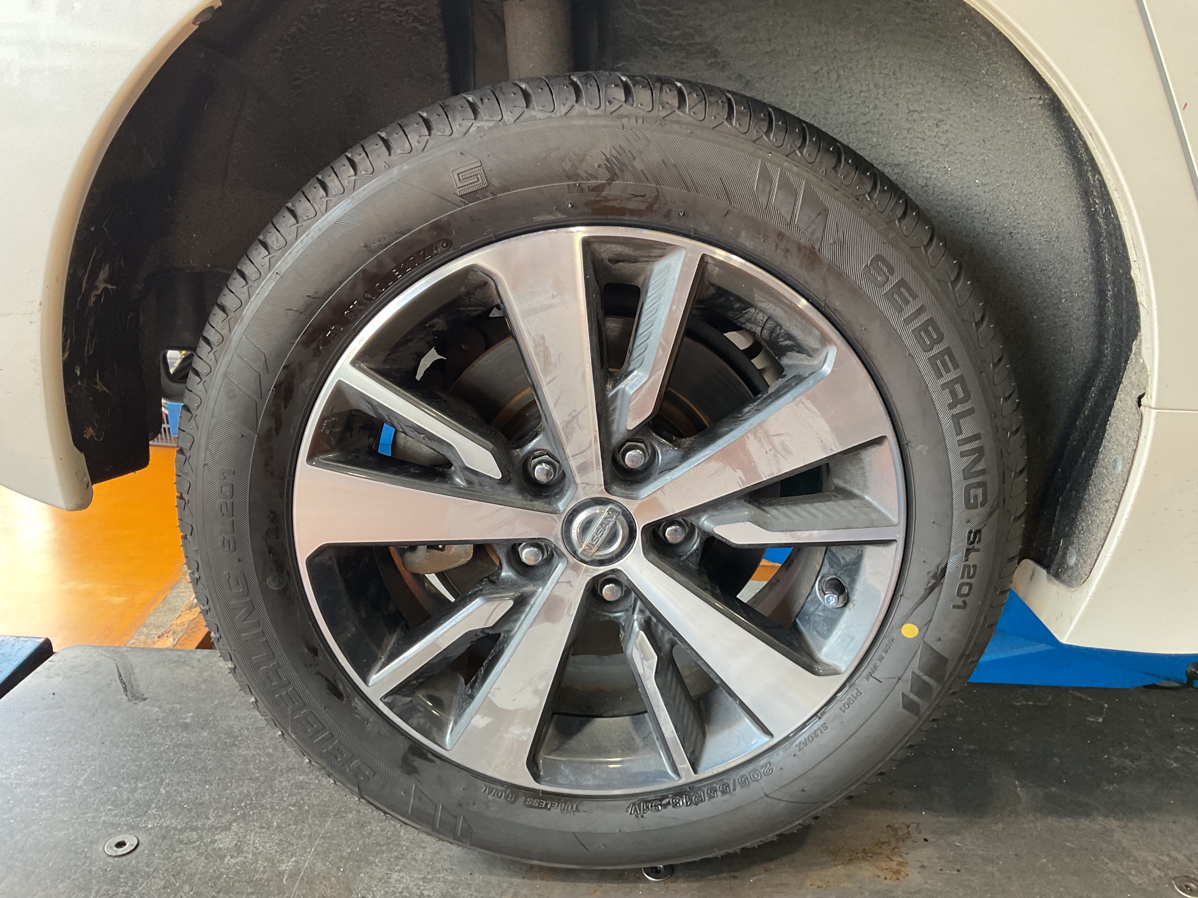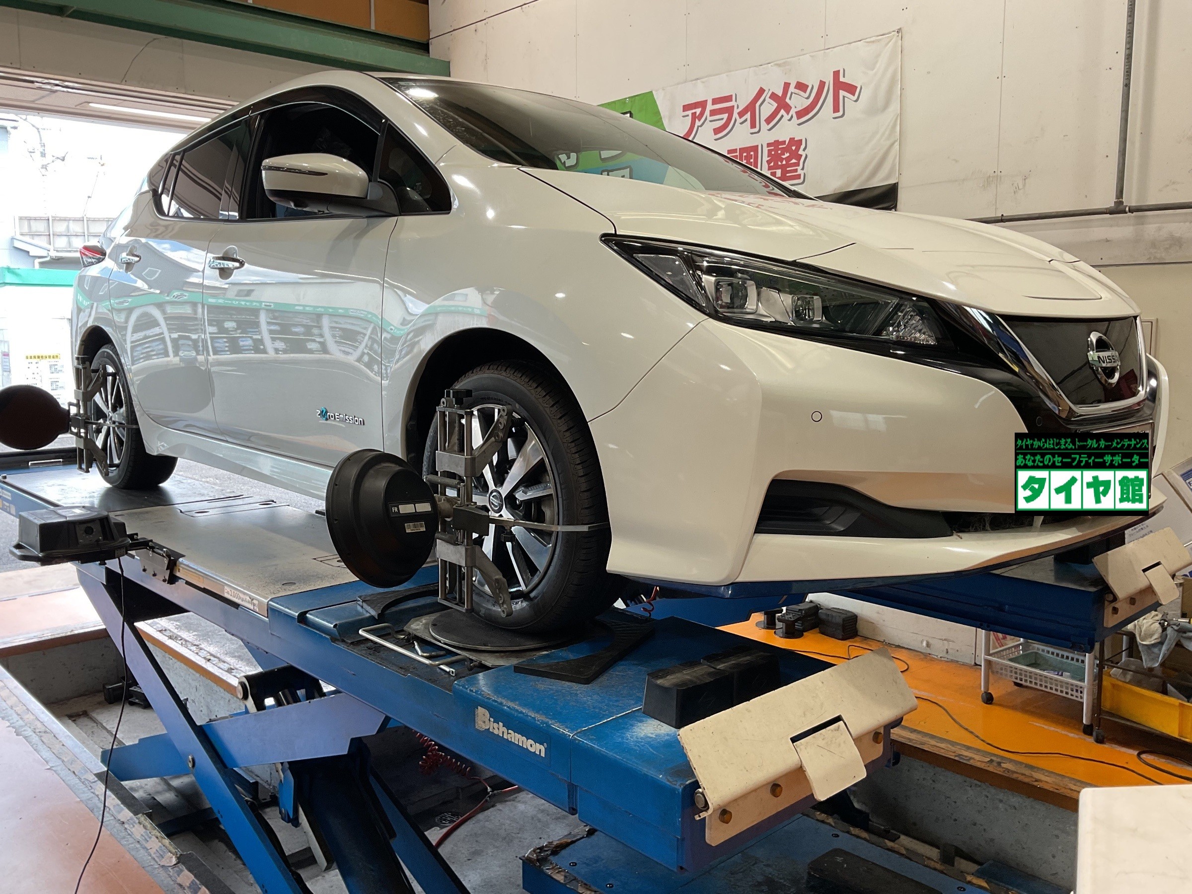 本日は日産リーフのタイヤ交換とアライメント調整を実施しました
