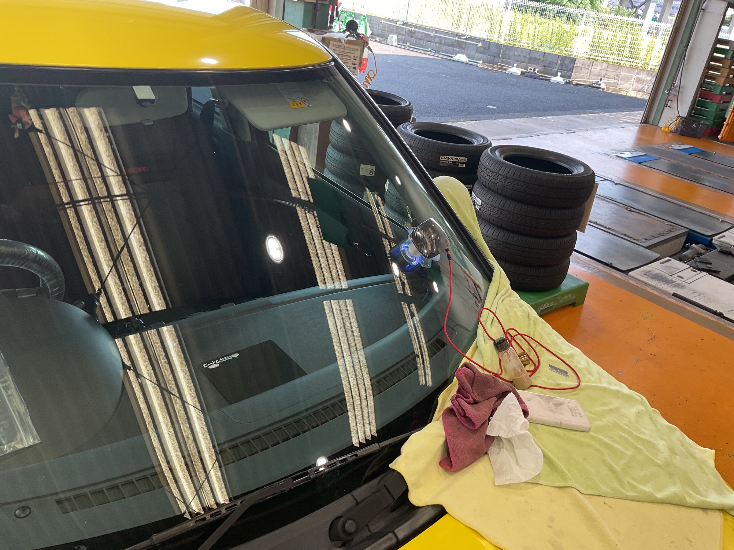 本日はフロントガラスの修理を行いました
