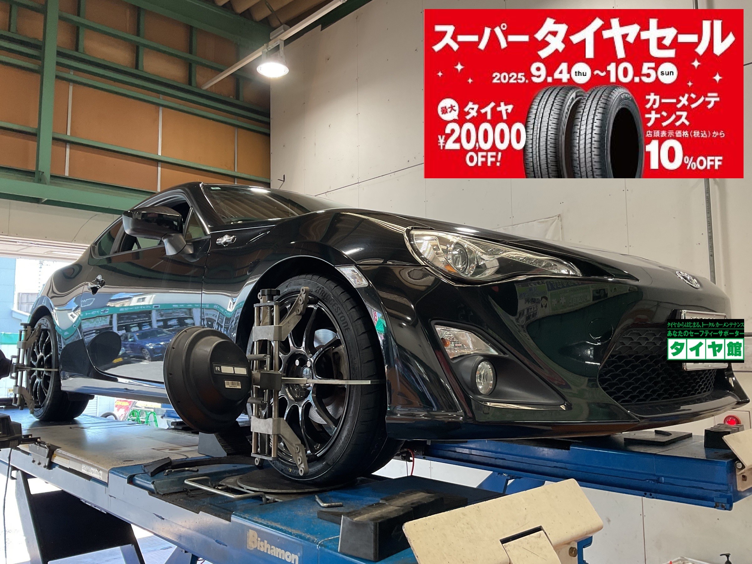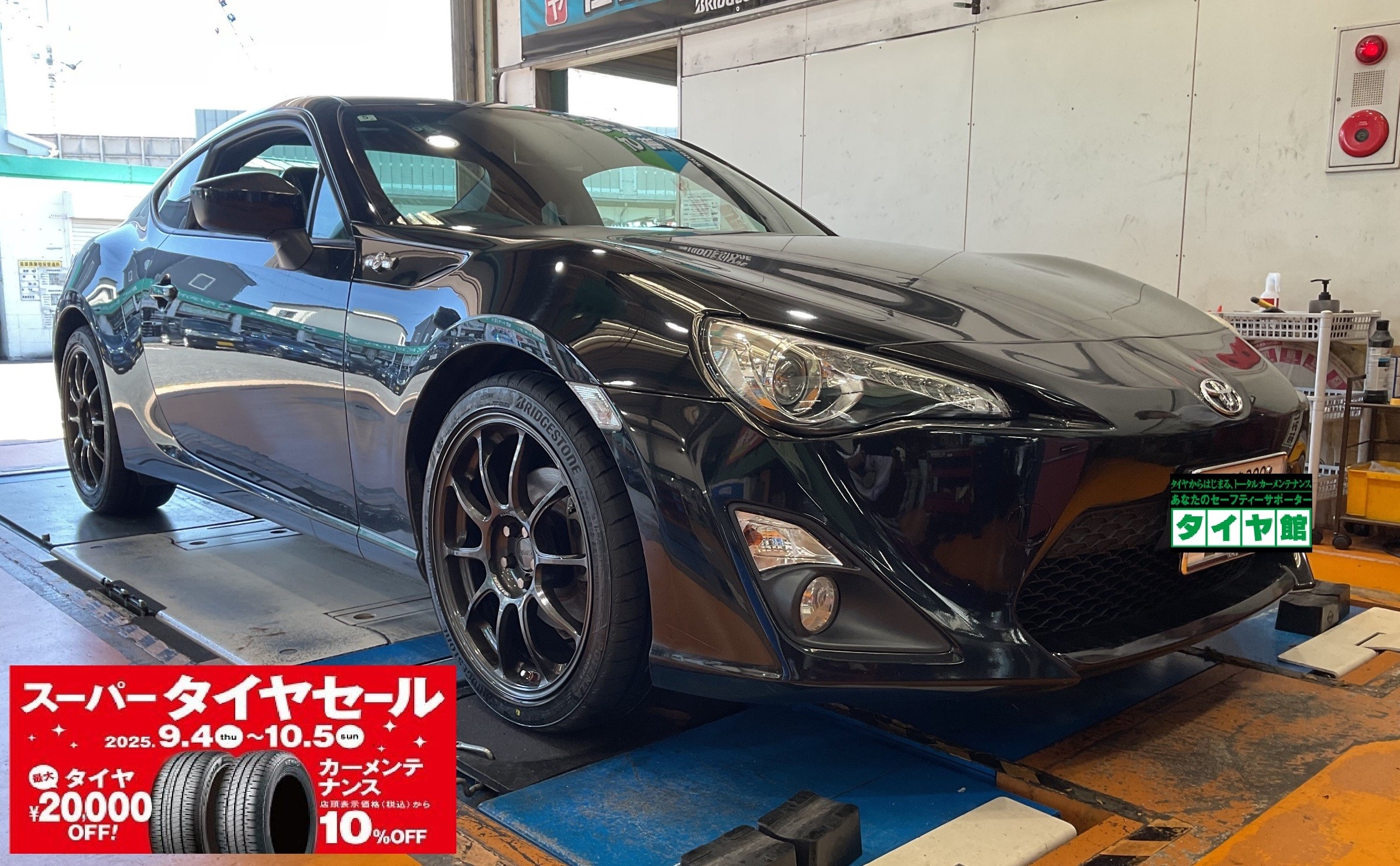 本日はトヨタ・86にブリヂストン・POTENZA S007Aでタイヤ交換をしました