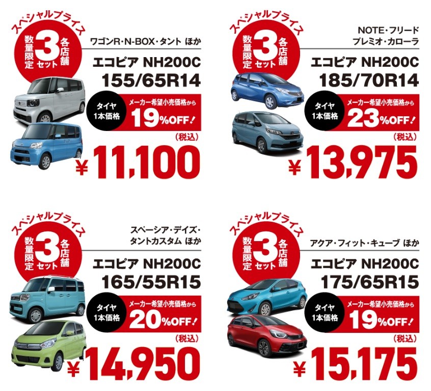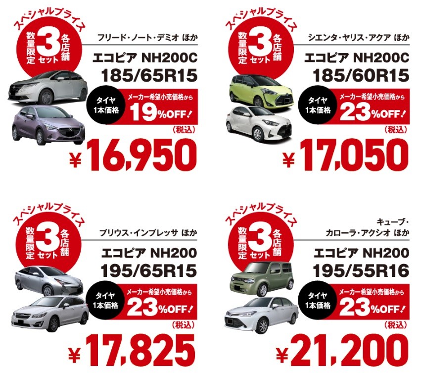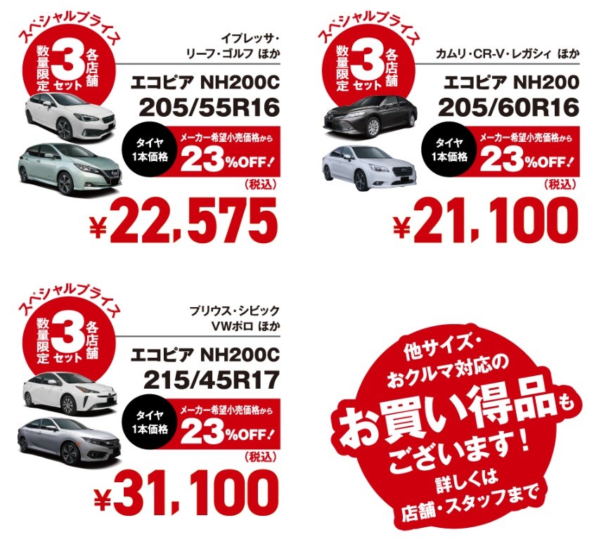 - 廃タイヤ処分料、取り付け工賃などは含まれておりません。