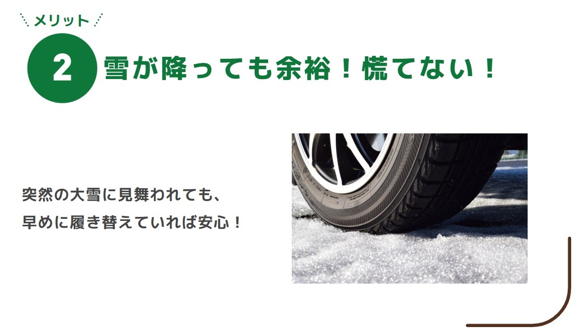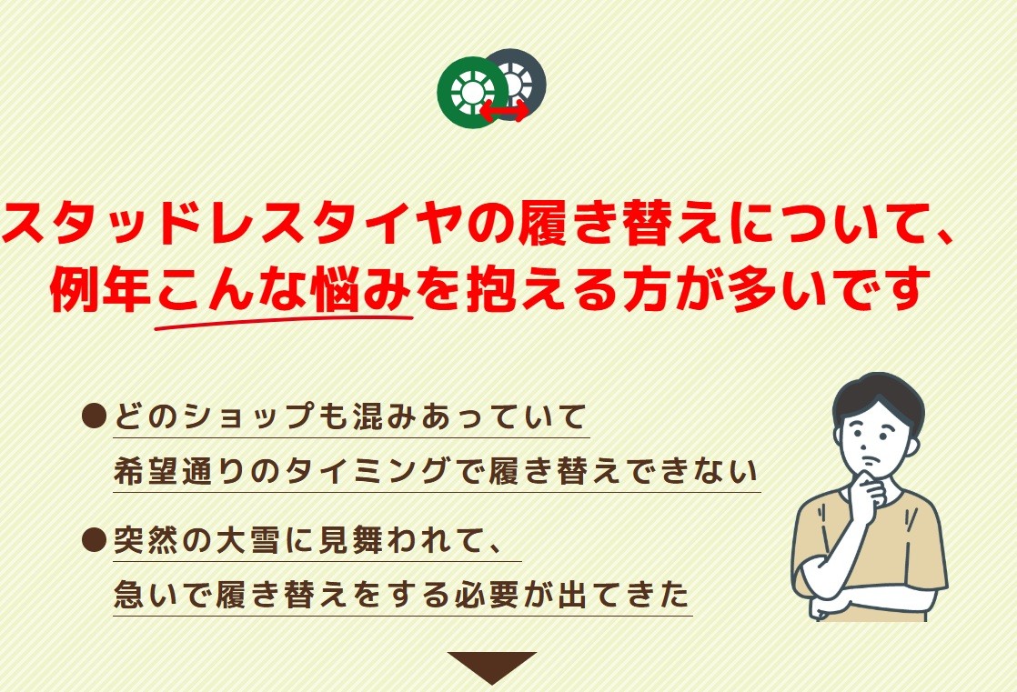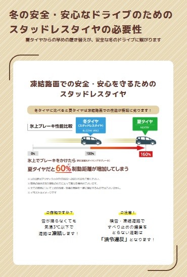 スタッドレスタイヤは早めに装着頂きたいです
