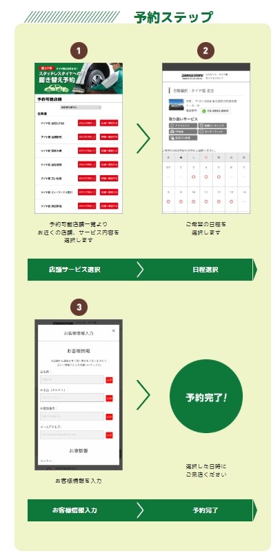 ★タイヤお預かりサービスをご利用中の方はホームページTOP画面の予約からお願いします