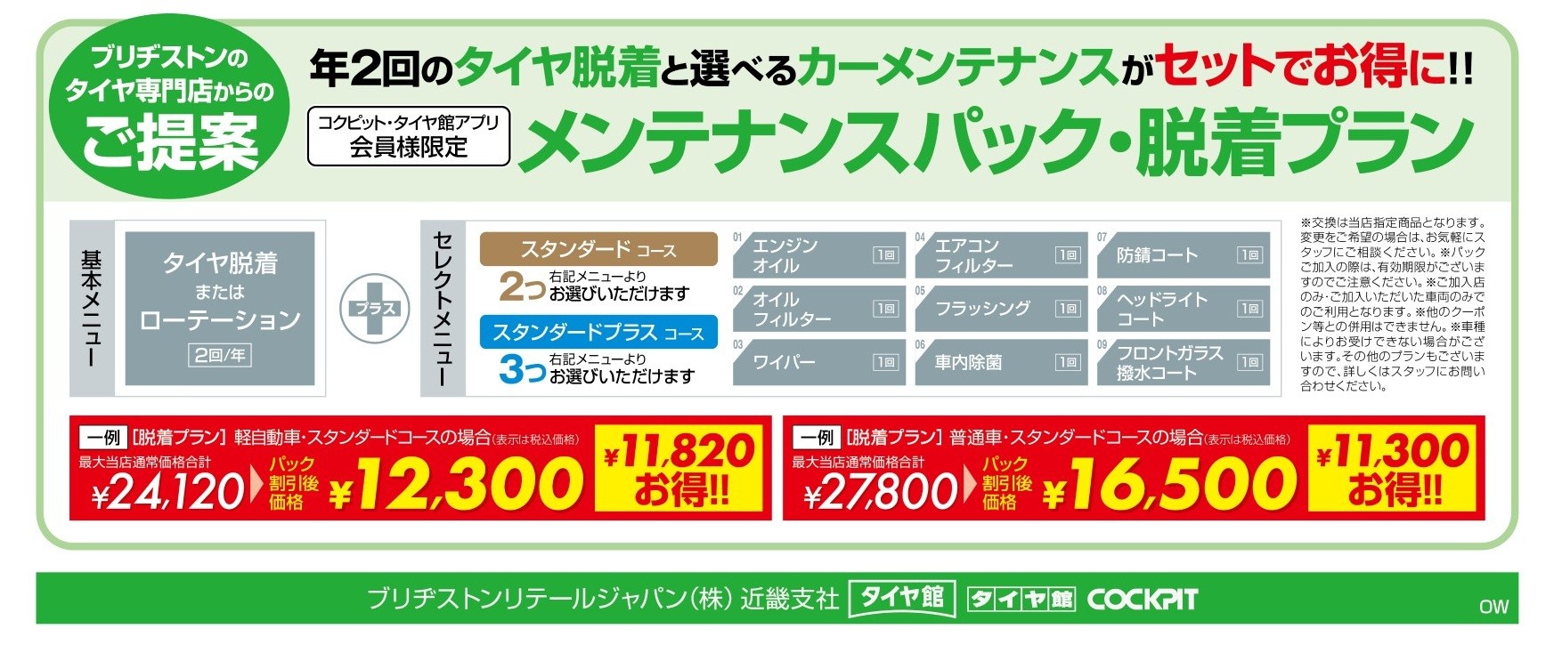 お得なメンテナンスパックもご用意しています