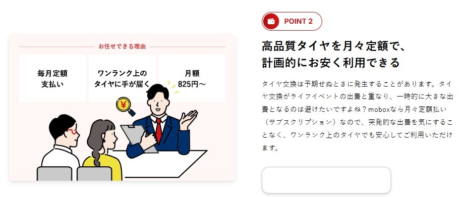 タイヤ館高槻ではタイヤご購入時の月々定額払い『ⅿobox』をお取り扱いしています