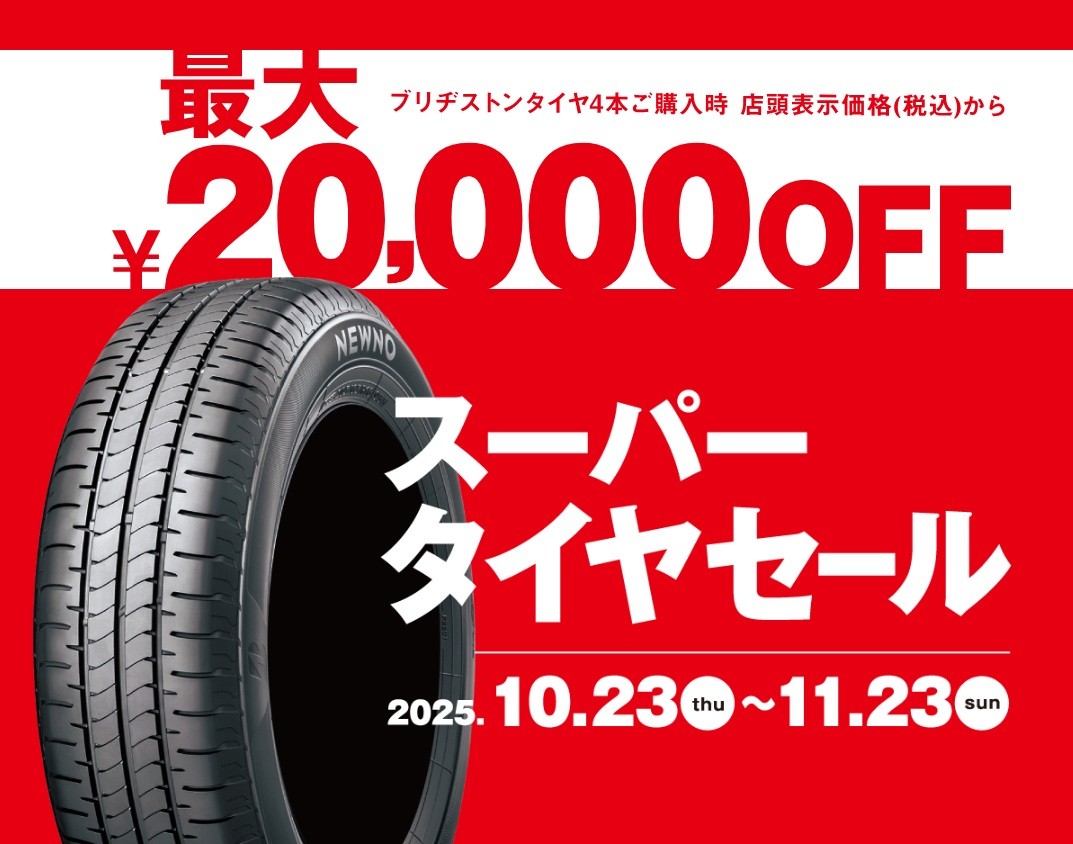 スーパータイヤセール開催中! タイヤ最大20,000円引き