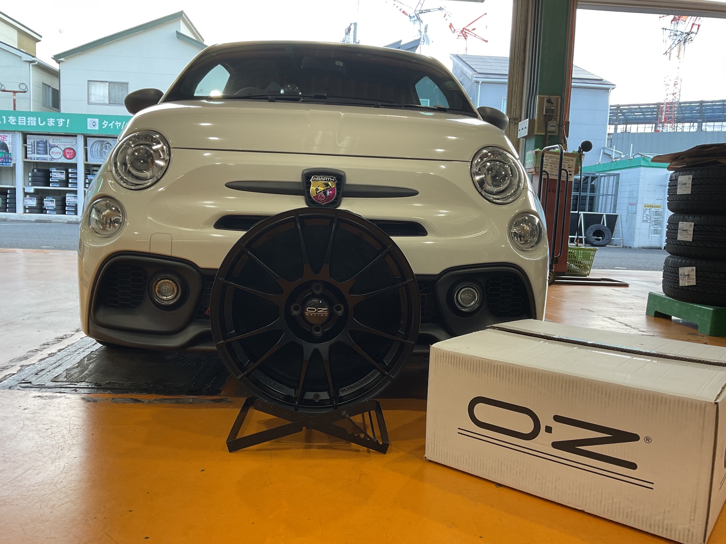本日はアバルト595にOZのウルトラレッジェーラを装着しました