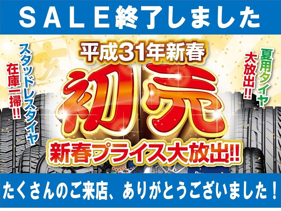 ☆新春セール終了致しました☆ ポスト 2019年1月14日 タイヤ館高槻店WEBご覧頂きまして、有難うございます(。・ω・)ノ゙ 2019年一発目の 新春初売りセールは本日で終了致しました(*^▽^*) 期間中は多くのお客様にご来店・ご利用頂きまして 誠に有難うございます(o^∇^o)ノ 次回のセールも是非ご期待くださいませ♪(o ̄∇ ̄)/ 担当:スタッフ一同