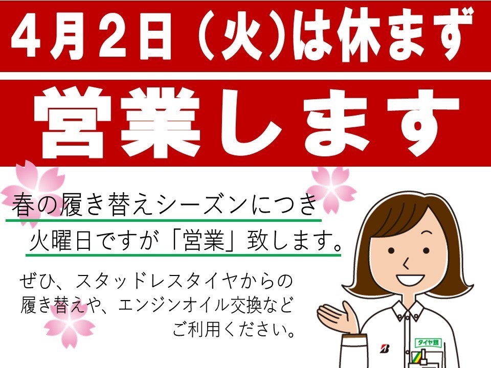 4月2日の火曜日は営業致します!!!!!!!!