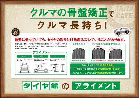 タイヤ館がおススメするアライメント調整☆ 『クルマ長持ちの秘密がここに...』
