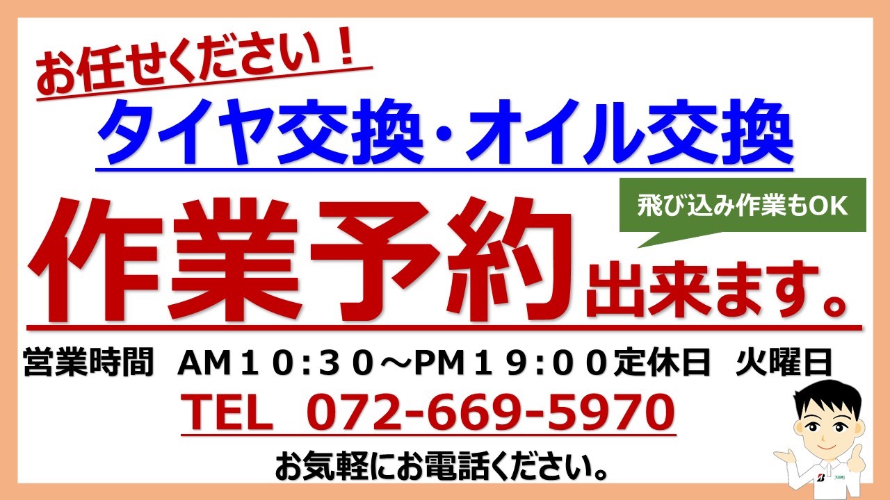 タイヤ館高槻店ではタイヤ、オイル交換の予約を承っています!!