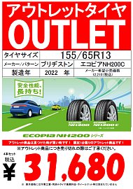 いつもタイヤ館高槻店の ホームページを ご覧頂き、ありがとうございます‼ ECOPIA NH200C 155/65R13 対応車種 ニッサン モコ・ルークス etc... ホンダ ライフ etc... マツダ AZワゴン etc... ミツビシ eKワゴン etc... スズキ アルト・ラパン・ワゴンR・MRワゴン etc... ダイハツ ミラ・ムーヴ etc....