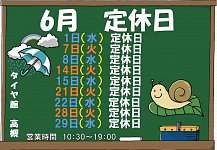 いつもタイヤ館高槻のWEBをご覧いただきありがとうございます(^^♪ 本日6月8日は定休日になります ご不便おかけしますが何卒宜しくお願い致します ☆★☆6月定休日のお知らせ☆★☆ ※※※ご来店の際はお気をつけ下さい※※※ 営業時間のお知らせ。 10:30~19:00までとさせて頂きます。 PIT作業最終受付は18:15...
