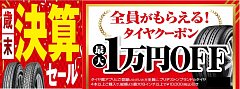 半期に一度の決算セール開催中!! 掘り出し物アウトレットのスタッドレスタイヤから 新商品ブリザックVRX3まで、決算価格にてセール!! 更にアプリ会員で最大1万円OFFタイヤクーポンもゲット出来るチャンス!!! 皆様のご来店をスタッフ一同、お待ち致しております!! セール内容はこちらから ...