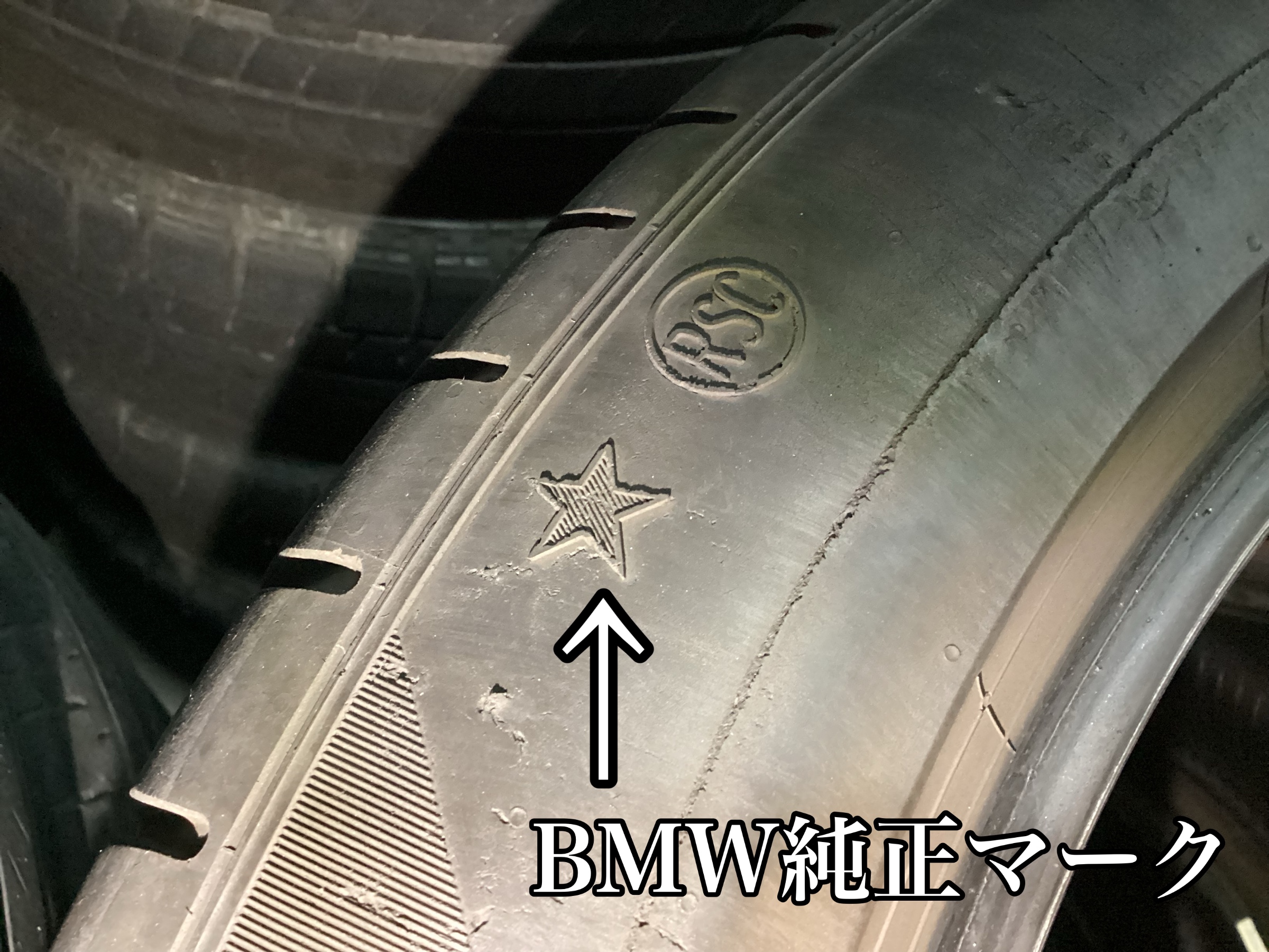 カーメーカーごとにタイヤ側面に純正マークがついています場合があります