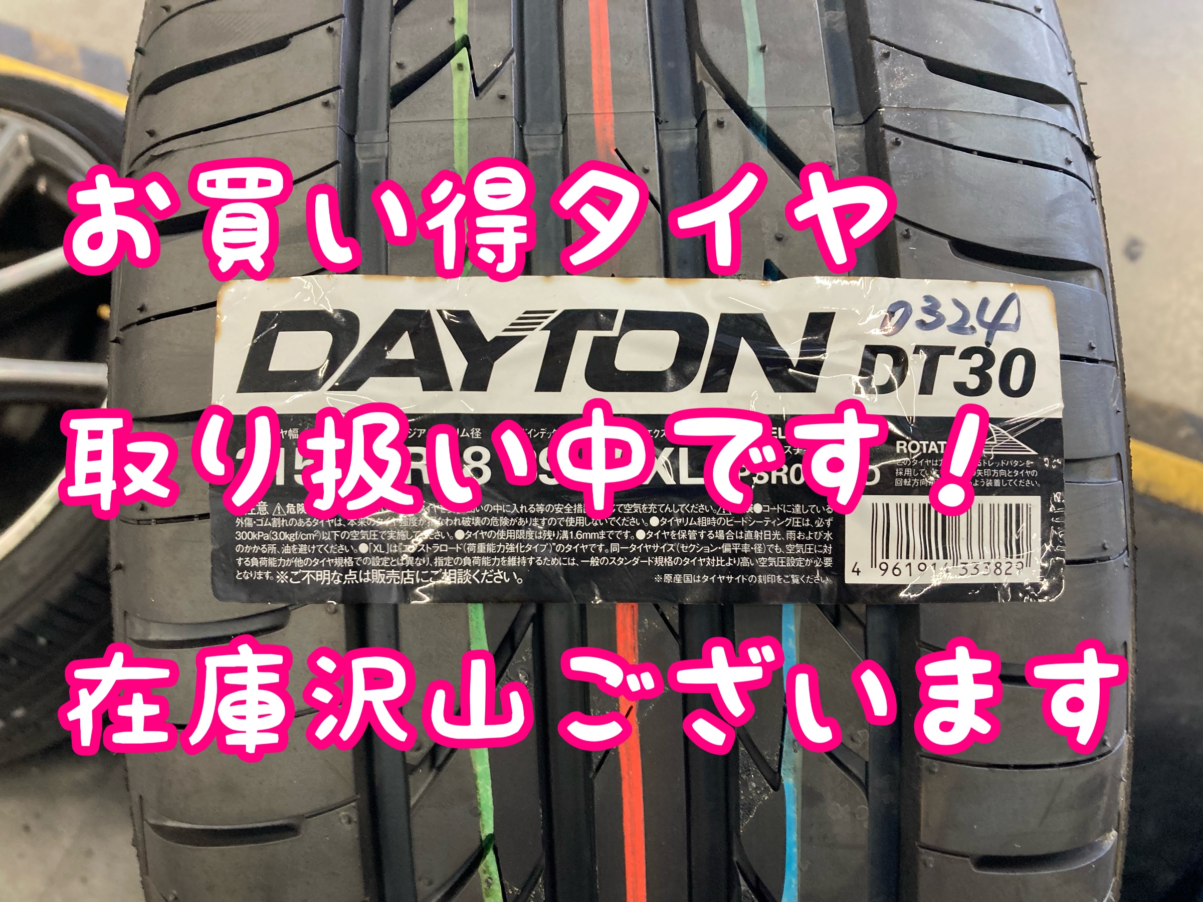 特殊なサイズですが、DAYTONは設定があるんです(^^)タイヤサイズが大きく偏平率が薄いタイヤは高額な物が多く、大きな出費になりがちです(涙)そんなときはコストパフォーマンスが優れているDAYTONタイヤがおすすめ