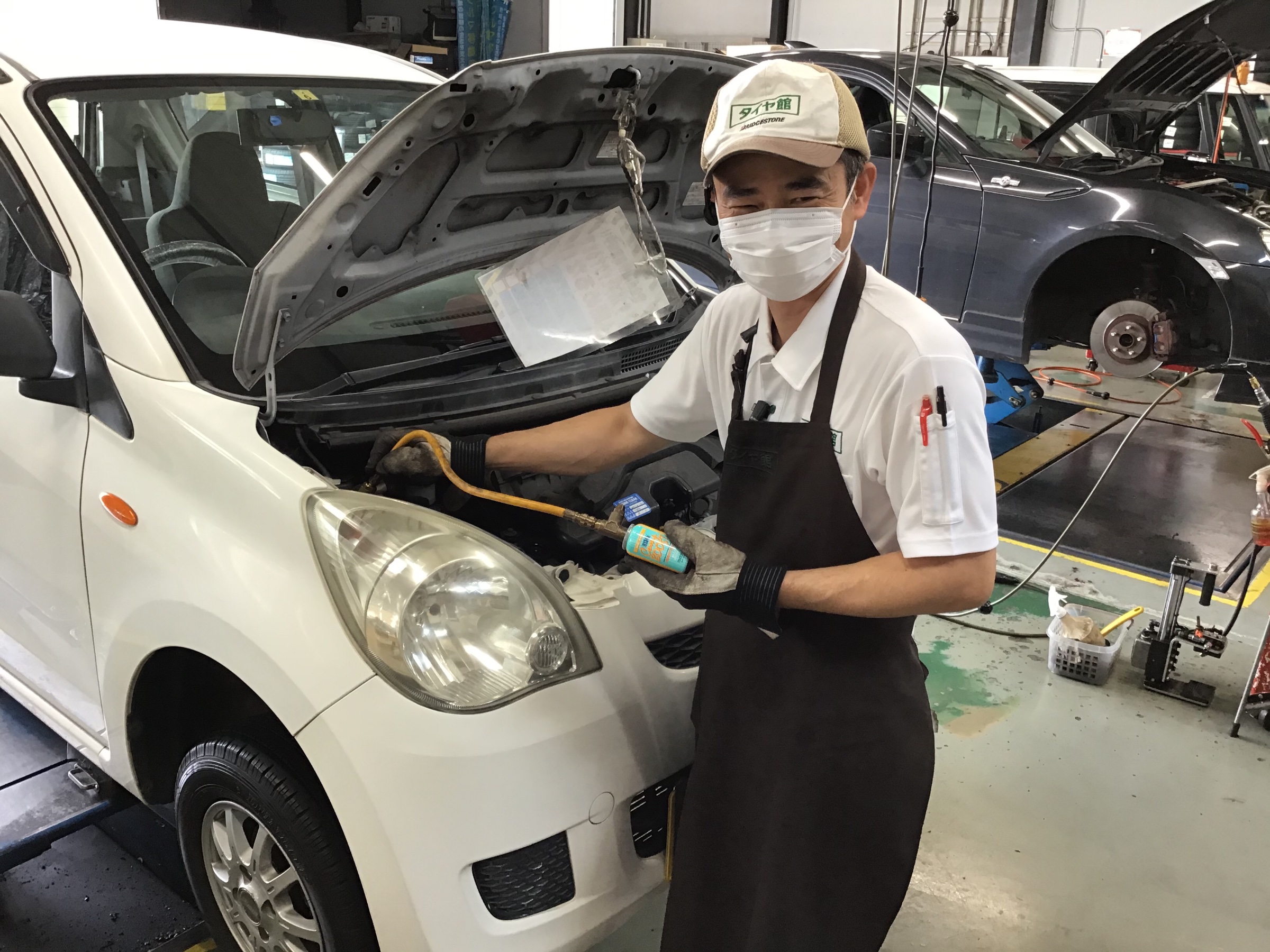 タイヤ館はメンテナンスも幅広くやっておりますので、タイヤは新しい車でもぜひご来店お願い致します!
