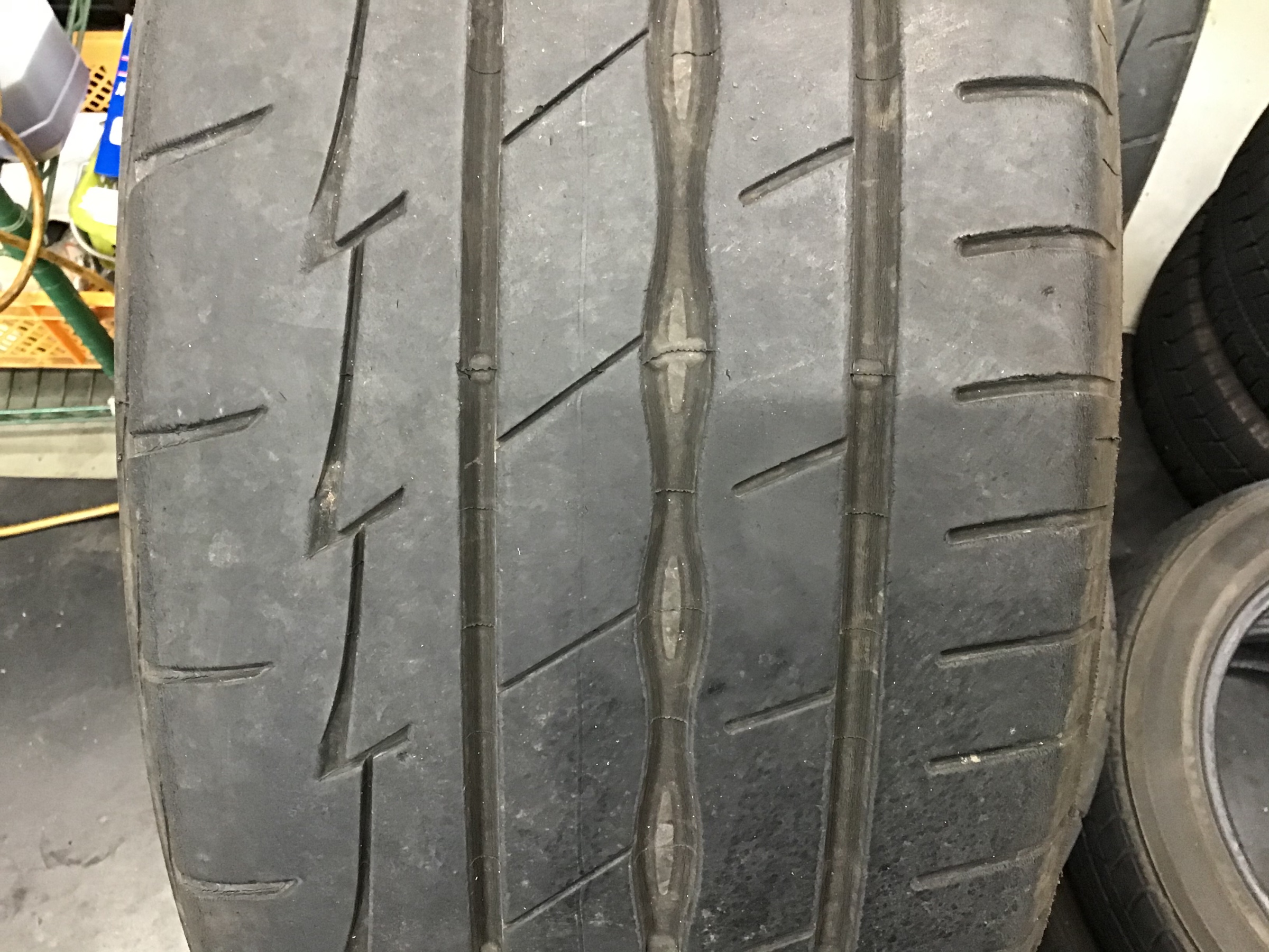 外しタイヤは経年によるヒビ割れと外側が偏って減っていました。