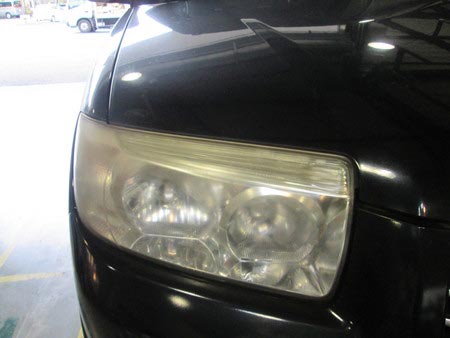 どうしても黄ばんでくるプラスチック製のヘッドライトカバー