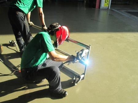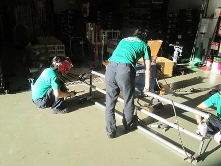 何やら…PITの端の方で…ド派手に切った貼ったしてる人が…
