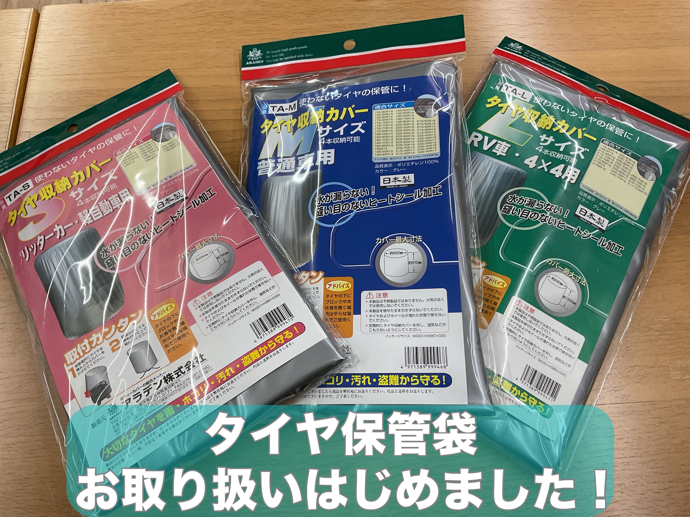 当店では、タイヤの保管袋のお取り扱いをはじめました!