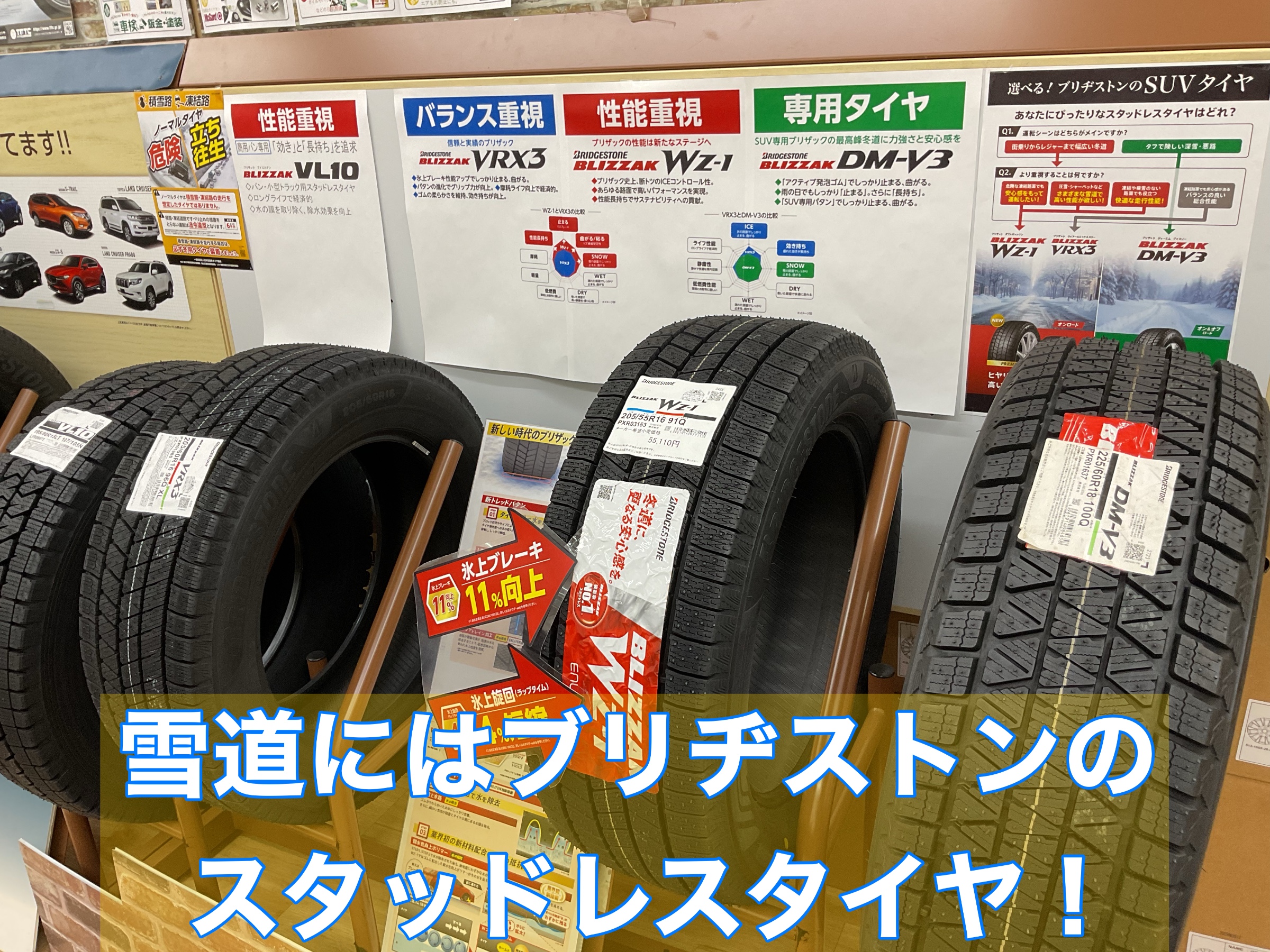 冬の雪道には安心安全のブリヂストンスタッドレスタイヤ! ポスト 2026年1月19日 当店では、年明けもスタッドレスタイヤのご販売ご案内中でございます♪ 冬の雪道では、お車が滑ってしまい、ヒヤヒヤした思いはございませんか? ブリヂストンのスタッドレスタイヤは、氷上のブレーキ性能を上げたスタッドレスタイヤ〜ブリヂストン基準を満たしたお財布に優しいタイヤまでご用意がございます。 BLIZZAK HP参照:https://tire.bridgestone.co.jp/blizzak/ 当店では、可能な限りお客様の走行に合ったタイヤをご案内させていただきます。 またタイヤは色々な種類があり、低価格タイヤ〜高価格タイヤまでございます。 ブリヂストンのスタッドレスだけでも種類があったりするので、是非店頭にお越しいただき、 ご検討いただければと思います。 ※サイズによってはご案内が出来ないタイヤもございます。 皆様のご来店お待ちしております♪ カテゴリ:タイヤ関連 その他メンテナンス 点検
