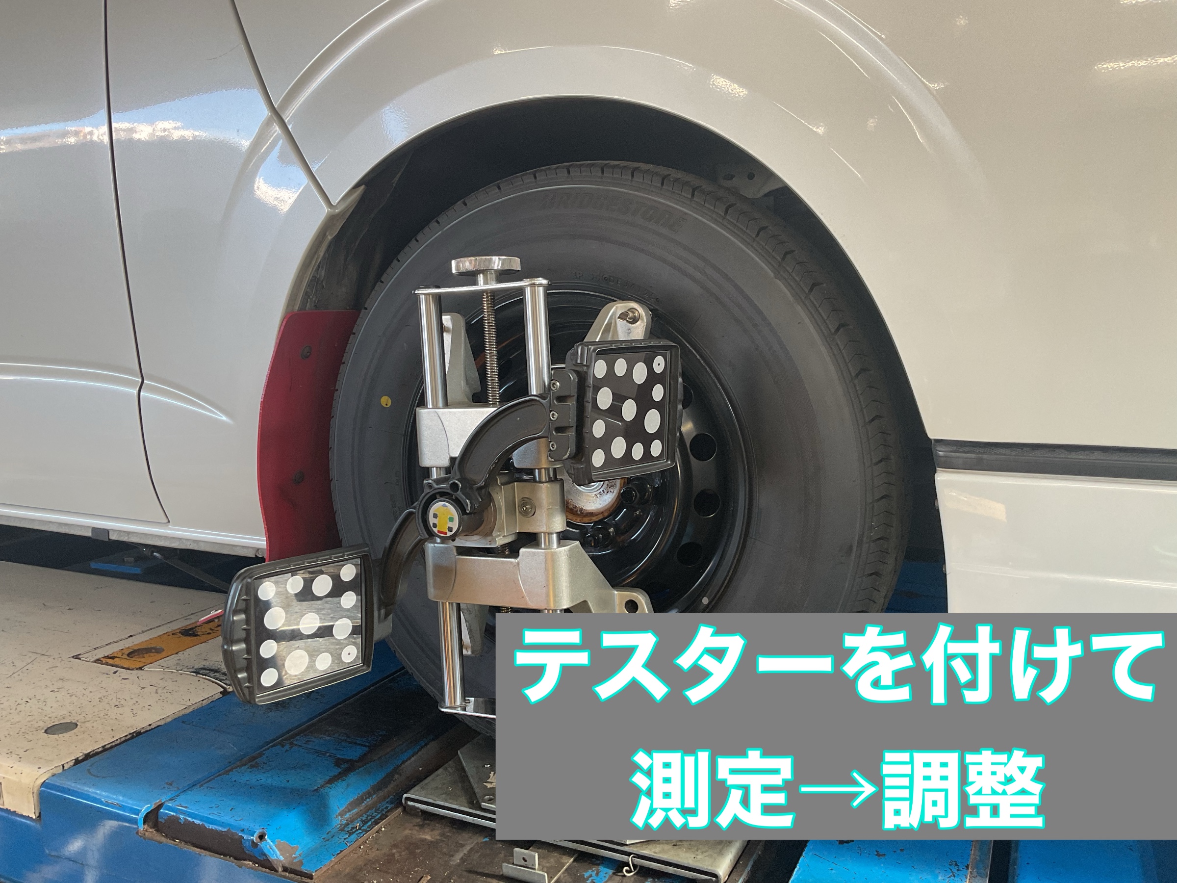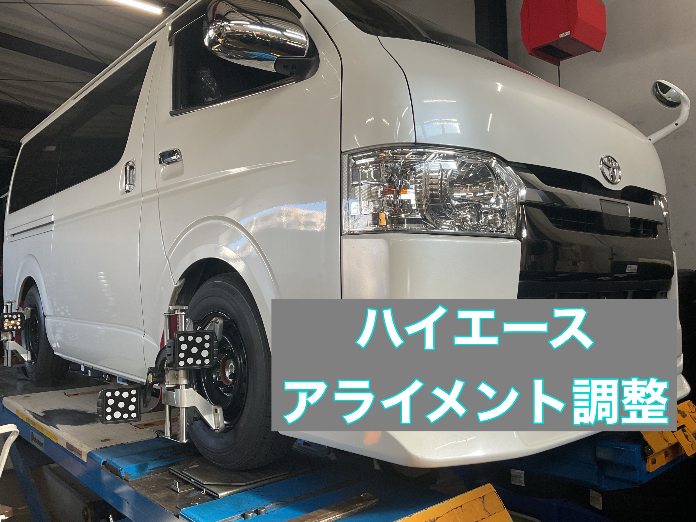 ハイエース アライメント調整 ポスト 2026年3月1日 今回は、お車トヨタ ハイエースのアライメント調整のご紹介。 今回は、足回り部品を変更されてからアライメント調整。 足回り部品を変えると基本的にアライメントのズレが生じてしまうのです。 アライメントのズレが生じると、、 ・タイヤの偏摩耗。(タイヤが長持ちしなくなる。) ・ハンドルセンターのズレ(まっすぐ走行できない)。 などの影響が出てしまうのです。 そうならないようにする為にアライメント調整をお勧めいたします。 アライメント作業の流れは、テスターをお取付後、測定を行い、データを確認しながら調整を行なっていきます。 データも専用の機械で数値が表示されるので、安心ですね! 今回は調整まで行い、作業完了です。 今後もドライブ楽しんで下さいね♪ カテゴリ:タイヤ関連 その他メンテナンス 点検
