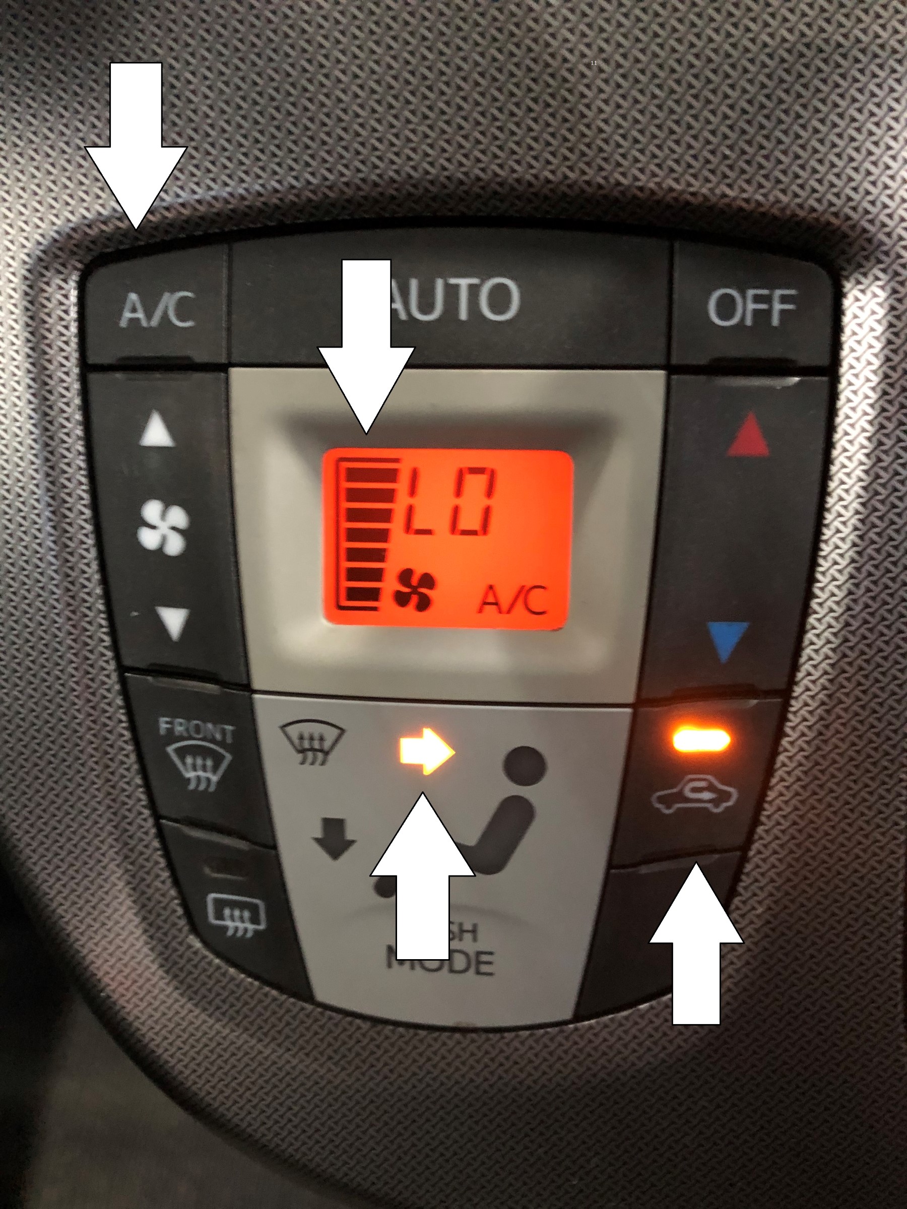 5分後、助手席足元中央に置き中央ボタンを一気に強く押し込みます。