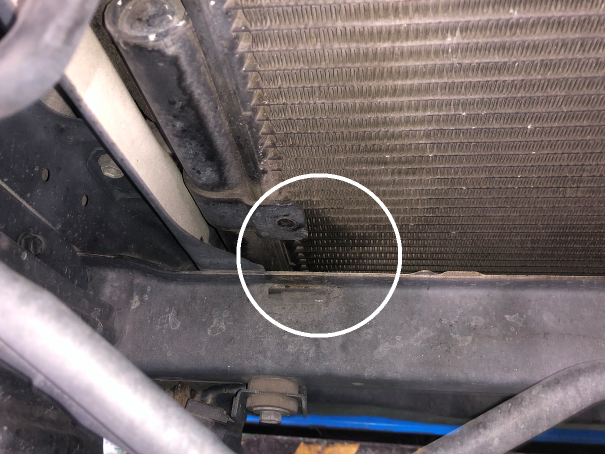 〇部分からエアコンガスが漏れているのでクーラーコンデンサー交換になります。