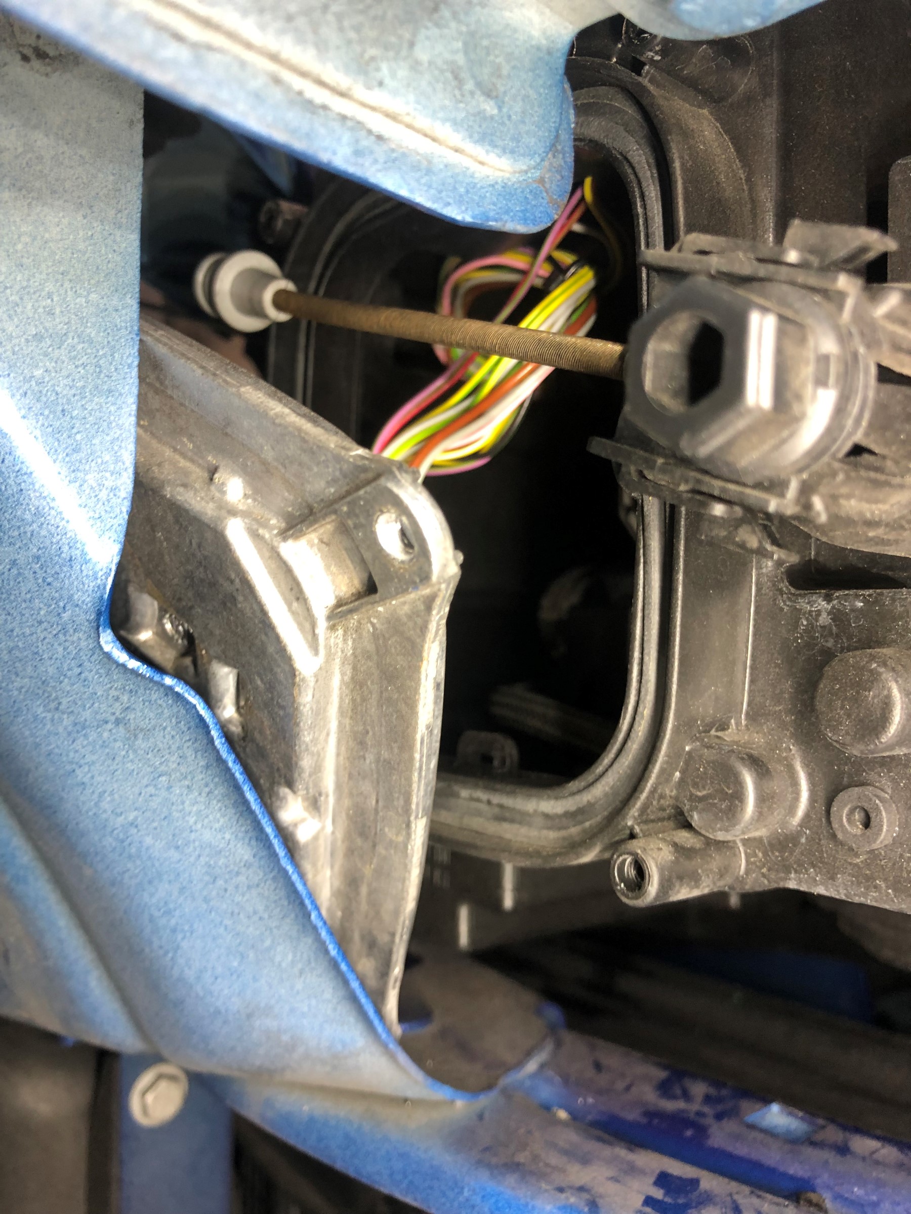 通常であればバンパーを外し、ヘッドライトを外しバルブ交換ですが今回はインナーライナーを外し裏側から作業します。