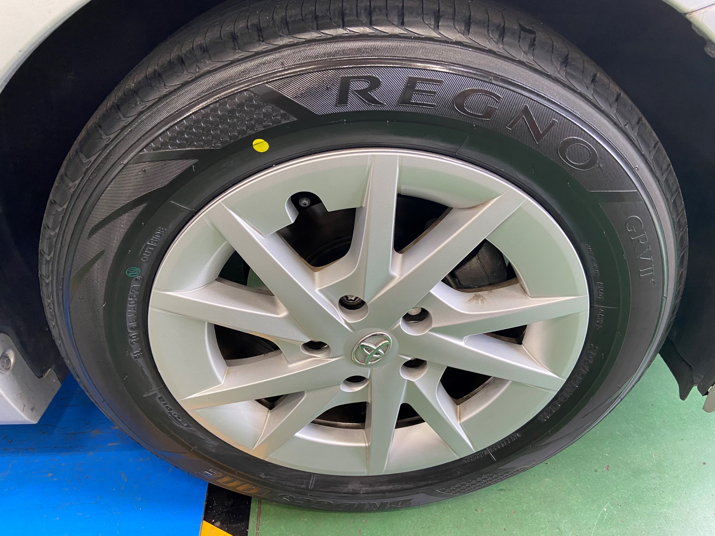 先日ご来店いただいたM様のプリウスアルファ、静かなタイヤにしたいとの事でレグノGRVⅡをお取付させていただきました!