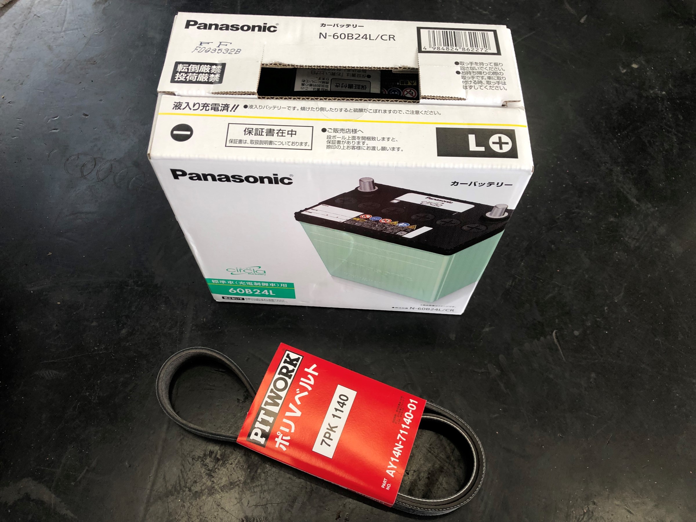 日産キューブ シングルベルト、バッテリー交換 ポスト 2021年7月13日 タイヤ館 多摩境店のホームページをご覧頂きありがとう御座います。 今回のご紹介は日産キューブ シングルベルト、バッテリー交換です。 バッテリーはPanasonicサークラ60B24L シングルベルトを外し、新品に交換です。※写真はベルトが外れた状態です。 バッテリーは前回交換から3年弱ご使用しており、交換のご依頼を頂きました。 来店ありがとうございました。 カテゴリ:その他メンテナンス 担当:太田