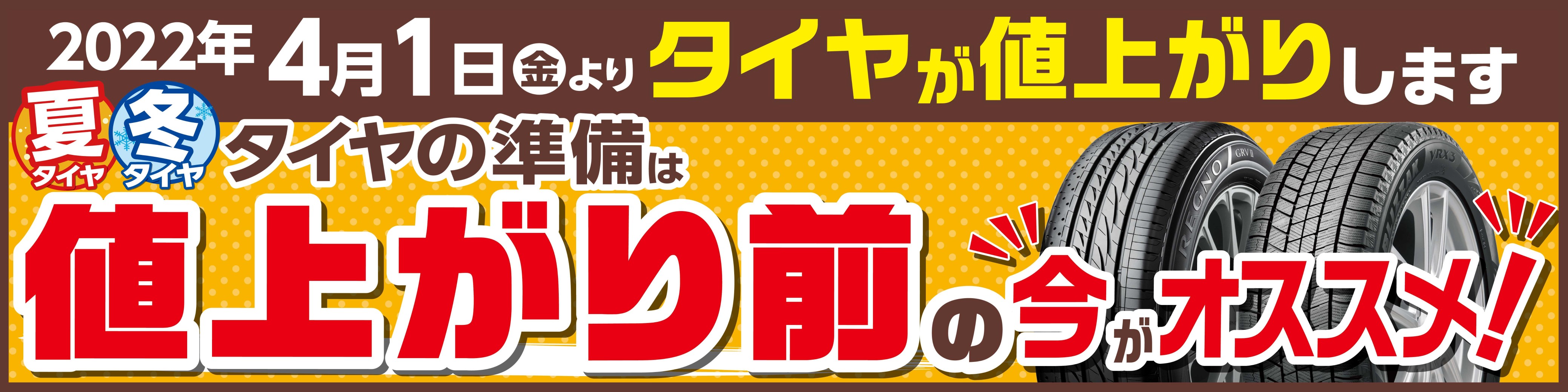 タイヤ値上がり前にタイヤをご購入したいお客様、ご購入頂ければ春まで夏タイヤを無料でお預かりします。